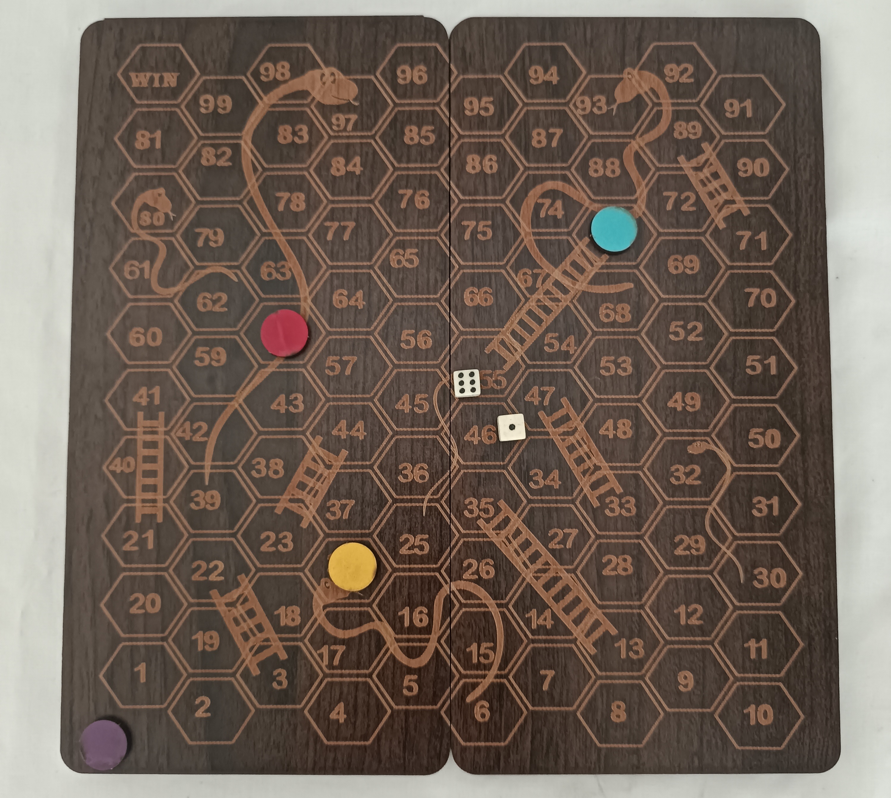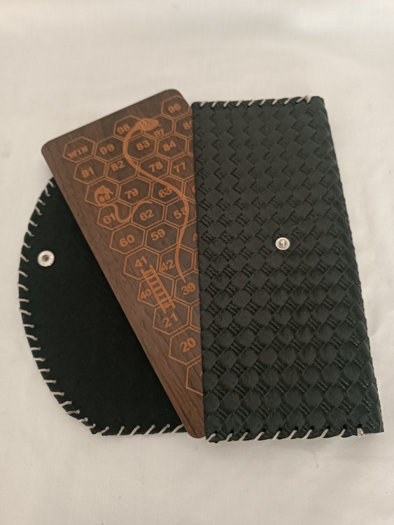 به همراه تمام مهره ها و تاس و کیف چرمی برای حمل آسان